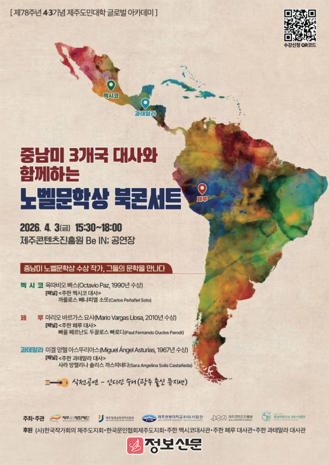 이번 행사는 멕시코, 페루, 과테말라 중남미 3개국의 정복과 식민, 저항과 기억의 역사를 조명한 노벨문학상 작품을 통해 4·3의 의미를 다시 묻는 자리로 마련한다. 특히, 중남미 3개국는 주한 대사들이 직접 패널로 참여해 자국 문화와 문학 속에 녹아있는 의미들을 도민들과 함께 나누는 자리가 될 예정이다.