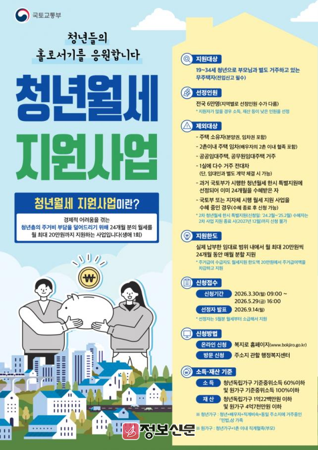이 사업은 청년들에게 월 최대 20만원씩, 최대 24개월간 임대료를 지원하는 사업으로, 2022년부터 두 차례에 걸쳐 한시적으로 추진되었으나, 임대료 상승 등으로 청년 주거비 부담이 지속됨에 따라 정부 국정과제로 채택되면서 올해부터 계속사업으로 전환됐다.