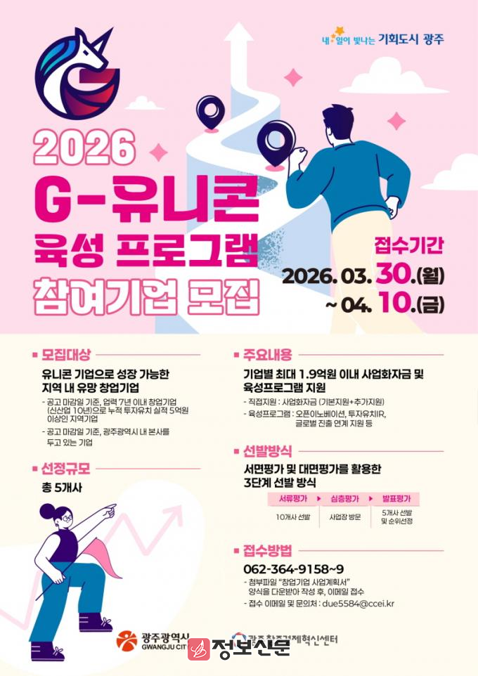 ![]() 광주광역시, ‘지(G)-유니콘 육성 프로그램’ 참가 기업 모집 |