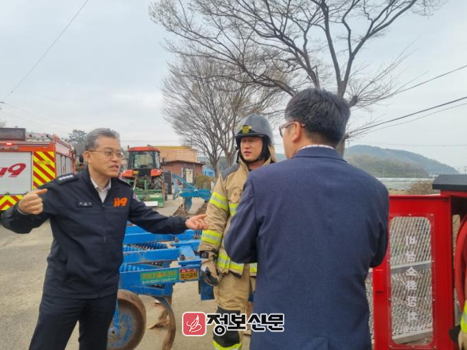 이번 점검은 산림 인접 마을과 산불 발생 우려 지역을 중심으로 진행됐으며, 산불 발생 시 초기 대응에 활용되는 비상소화장치의 정상 작동 여부와 관리 상태를 집중 확인했다. 아울러 소방용수시설 주변 접근성, 장비 사용 상태, 주변 위험요인 등을 함께 살피며 현장 대응체계도 점검했다.