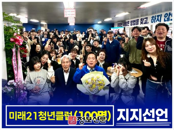 지지 열기의 최고조 신호탄을 쏘아 올린 것은 ‘미래 21 청년클럽’ 소속 청년 100인이다. 이들은 지난 29일 선언문을 통해 “7년 연속 공약이행평가 최우수(SA)를 받은 검증된 실력자”라며 “청년의 목소리를 행정 중심으로 이끌 유일한 적임자”라고 치켜세웠다.