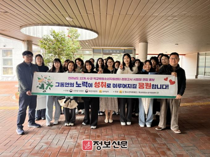 이번 응원은 전라남도 내 22개 시·군 학교밖청소년지원센터가 연합하여 진행되었으며, 광주·전남 지역 검정고시 시험장을 찾아 청소년들에게 따뜻한 격려와 응원의 메시지를 전달했다.