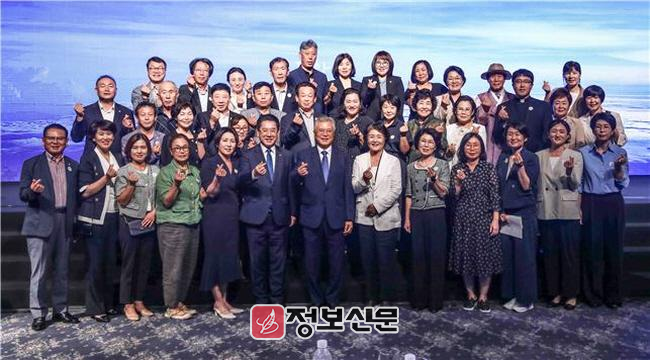 ‘평화, 가야 할 그날’ 이라는 주제로 개최된 이번 포럼에는 문재인 전 대통령 내외를 비롯해 김희중 대주교 , 김영록 전남도지사 , 박지원 국회의원 등 300 여 명의 주요 인사가 참석했다 .