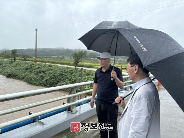 최 군수는 오전 호우대비 대책회의에 참석하고 현장으로 즉시 이동하여 관계 공무원과 함께 운곡교 수위 변화를 확인하고 운곡마을 침수 위험 여부 등을 점검했다.