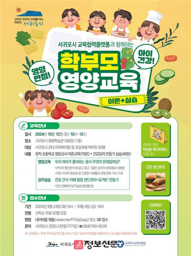 ![]() 서귀포시, 학부모 영양교육 참가자 모집 |