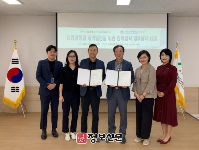 제주사회서비스원과 한라대 LINC 3.0 사업단은 23일 제주사회서비스원 1층 희망나눔실에서 양 기관의 주요 관계자가 참석한 가운데 업무협약을 체결했다.