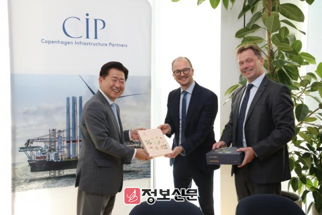 덴마크를 방문 중인 제주도 대표단은 현지 시각 20일 오후 덴마크 코펜하겐인프라스트럭처파트너스(CIP) 본사를 방문해 라스 거트 로스 CIP 국제협력 및 마케팅 총괄사장, 예스퍼 크래럽 홀스트 코펜하겐오프쇼어파트너스(COP) 아시아 태평양 지역 총괄대표와 면담을 갖고 탄소중립 정책과 신재생에너지 산업에 대한 의견을 나눴다.