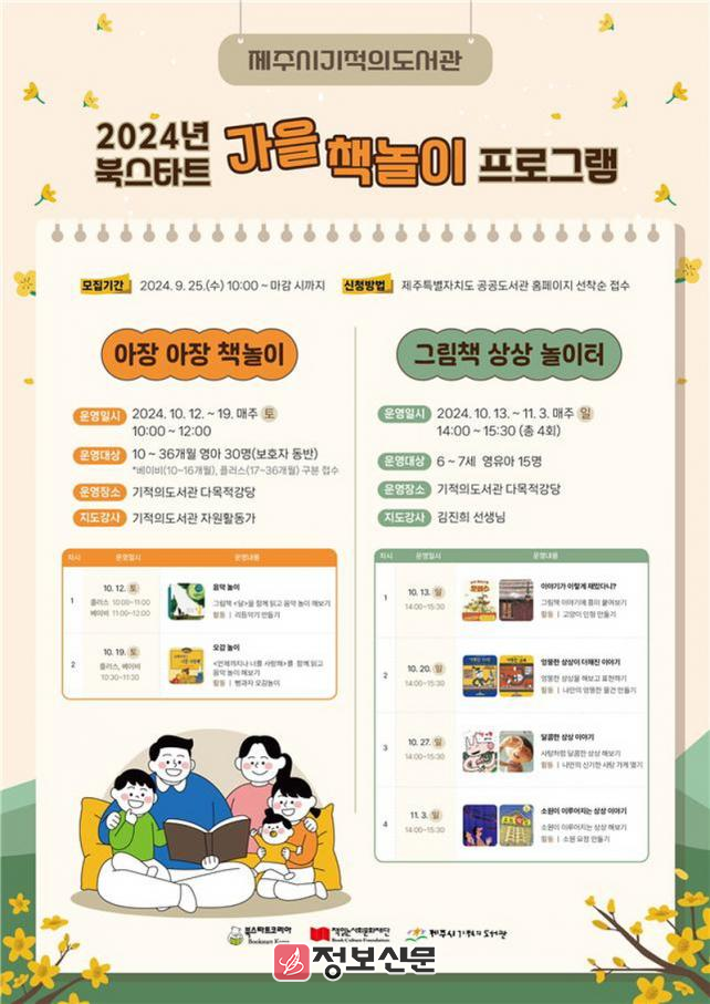 ![]() 제주시기적의도서관, 북스타트 가을 책놀이 프로그램 운영 |