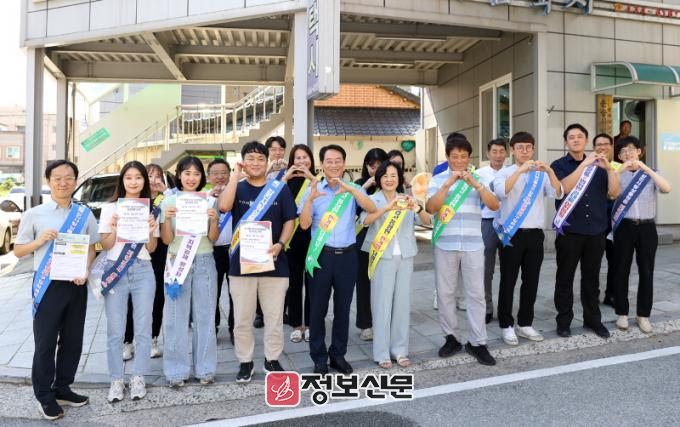 ![]() 강진읍 일대에서 강진원 군수와 공무원, 상인들이 함께 상품권 부정 유통 캠페인을 실시하고 있다.