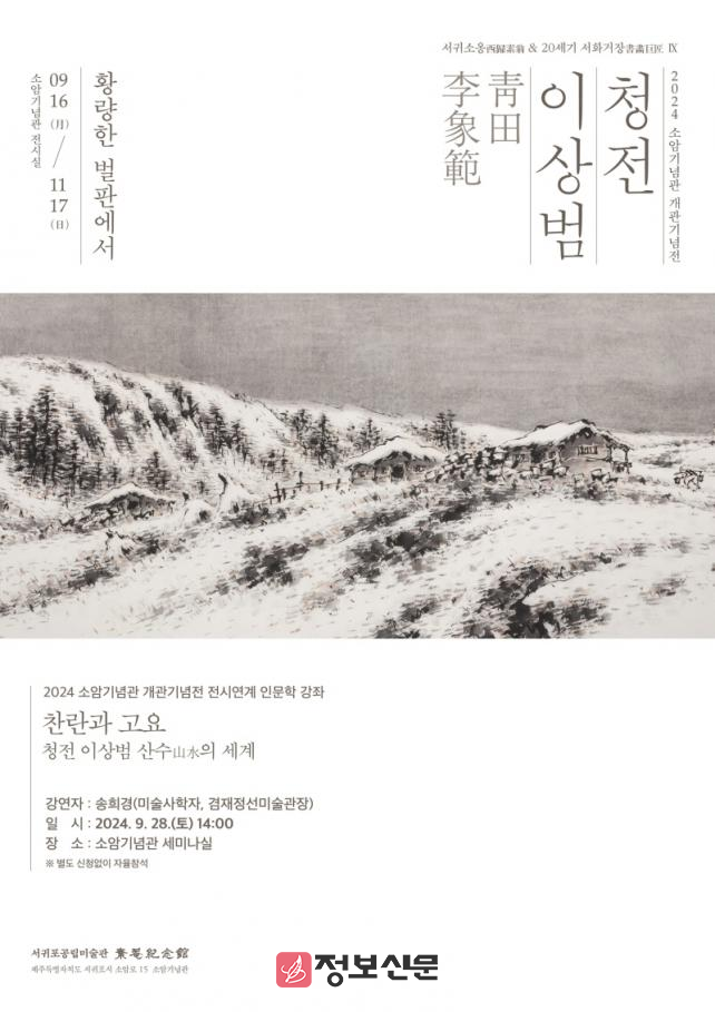 ![]() 서귀포시 소암기념관, 인문학 강좌 찬란과 고요, 청전 이상범 산수의 세계 개최 |