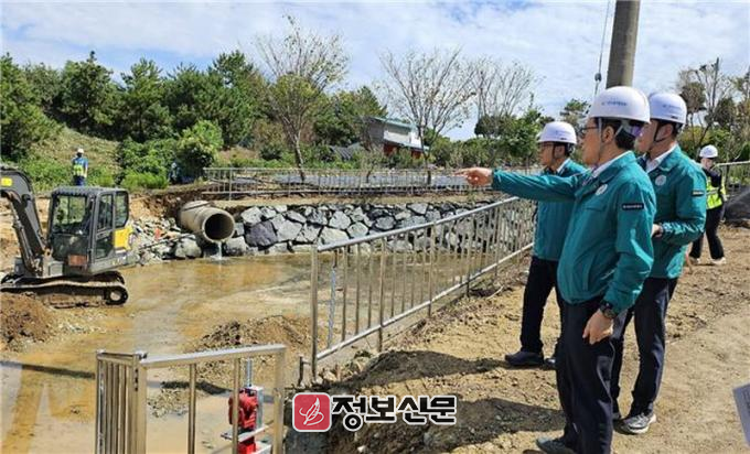 ![]() 한국농어촌공사 이병호 사장은 24일 해남군 황산면 관춘저수지를 찾아 집중호우 피해현황을 점검하고 신속한 복구를 지시했다.