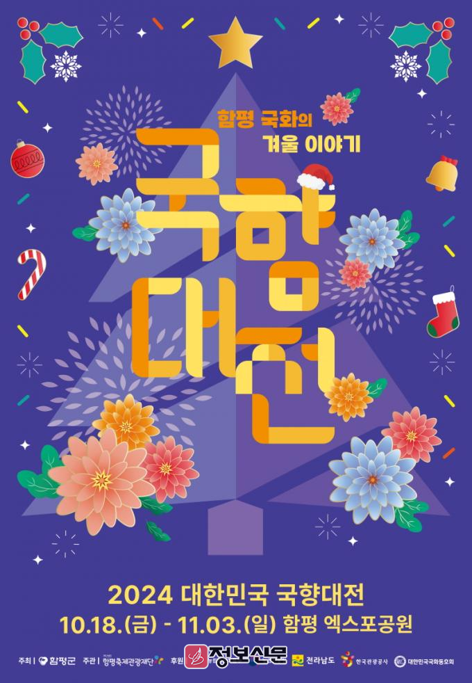 이번 2024 대한민국 국향대전은 ‘함평국화의 겨울이야기’라는 주제로 엑스포공원에서 열리며, 가을 국화의 아름다움을 느낄 수 있는 다양한 조형물과 이벤트가 준비돼 있다. 특히, 대형 조형물 크리스마스트리, 종 모양 게이트, 마법의 성, 국화 9층 탑과 캐릭터 조형물 등 아름답고 새로운 국화 작품들과 다채로운 프로그램으로 관람객을 맞이할 예정이다.