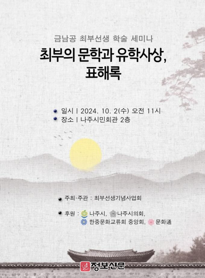 이번 학술세미나는 나주 출신 ‘조선 최고의 선비’로 일컬어지는 ‘표해록’의 저자, 금남공 최부 선생을 선양 및 현창하고 선생의 정신문화를 계승하기 위해 열리며 나주시가 지원한다.