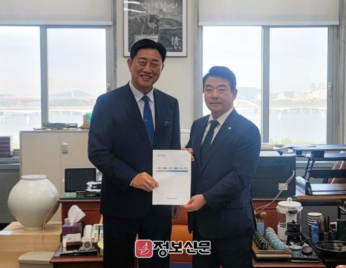 ![]() 장성군 김한종 장성군수(좌)가 25일 박정 예산결산위원장과 면담을 가졌다 |