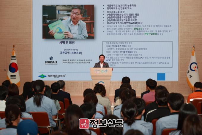 대한민국 물류 분야 개척자 서병륜 회장은 대한민국 물류 중심지인 광양시, 로지스올 그룹, 광양지역기업체 간 상생 협력 방안을 모색하기 위해 마련된 이번 특강에서 100년 기업을 위한 비전과 기술 혁신을 위해 끊임없이 노력해온 그간의 과정을 공유했다.