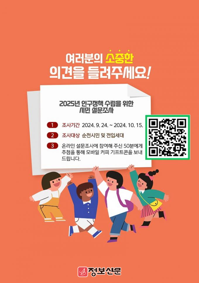 ![]() 순천시, “순천 시민의 소리 듣는다” 인구정책 설문조사 실시 |