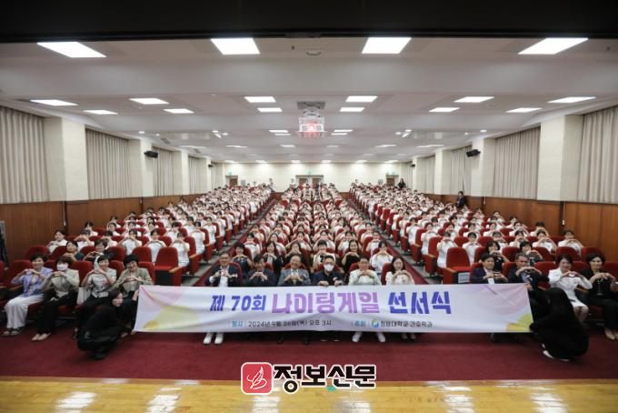 나이팅게일 선서식은 첫 임상실습을 앞두고 있는 238명의 재학생들이 간호전문직의 숭고한 정신을 엄숙히 선서하며, 생명의 존중과 봉사정신 그리고 사랑을 실천하고자 다짐하는 자리이다. 이날 선서식은 개회사를 시작으로 국민의례, 70주년 역사기념 영상, 격려사, 축사, 촛불의식, 나이팅게일 선서, 축하공연 등의 순서로 진행했다.