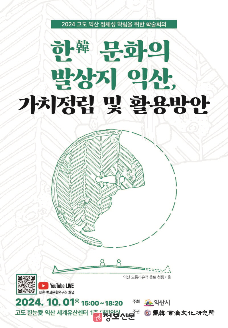 주제발표와 종합토론에서는 △한국사상 마한문화의 위상과 익산 △익산마한문화의 현황과 가치 △익산마한문화의 활용방안과 과제 △익산 마한문화유산의 보존·정비·활용을 위한 사례 검토 등이 다뤄진다.