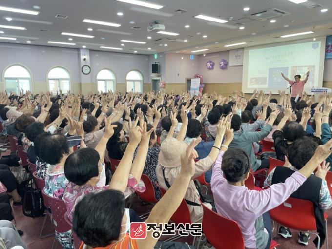 이번 강연은 동구노인종합복지관에서 열렸다. 웃음박사 김영식 남부대학교 교수의 ‘치매예방을 위한 웃음건강법’을 주제로 웃음은 긍정적 정서 함양과 뇌 특히 전두엽 활성화와 얼굴근육의 다양한 움직임 등이 웃음운동효과가 있음을 유쾌하게 풀어내 참여자들의 큰 호응을 얻었다.