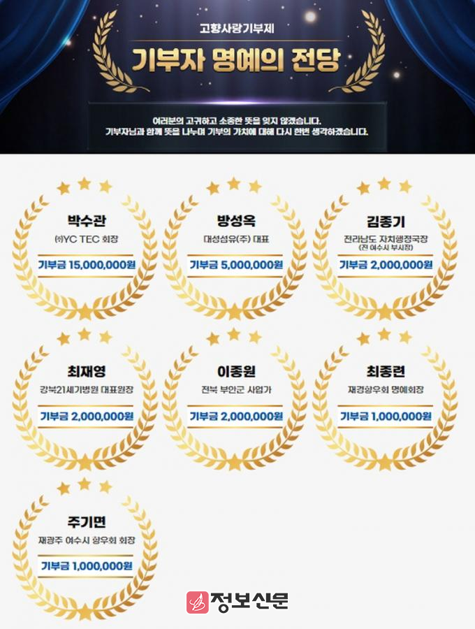 ![]() 여수시 고향사랑기부제 명예의 전당 |
