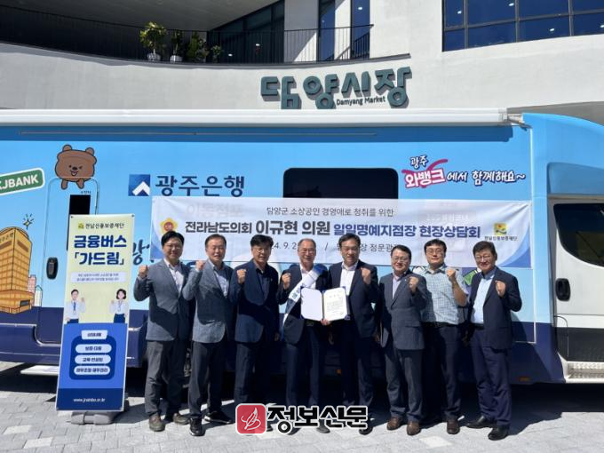 올해 9번째로 실시한 금융버스‘가드림’은 생업으로 인해 재단 방문이 어려운 소상공인을 위해 전남신보가 광주은행과 함께 원스톱지원단을 구성하여 직접 현장에 찾아가 금융상담을 제공하는 서비스이다.