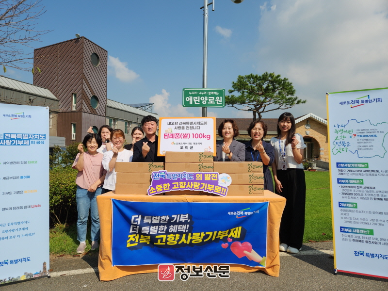오이균 대표이사는 지난 8월 30일 전북특별자치도청을 방문해 고향사랑기부금 100만원을 기부했으며, 고향사랑기부제를 통해 받은 답례품인 신동진 쌀 100kg을 김제에 위치한 애린양로원에 전달하기로 했다.