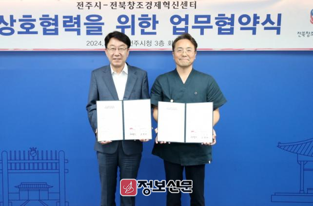 전주시와 전북창조경제혁신센터는 30일 시청 3층 회의실에서 우범기 전주시장과 강영재 센터장 등 양 기관 관계자들이 참석한 가운데 ‘창업생태계 활성화 및 창업네트워크 구축을 위한 상호협력 업무협약’을 체결했다.