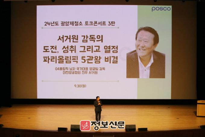 ![]() 지난 30일, 광양제철소 백운아트홀에서 서거원 전 양궁대표팀 감독 초청 토크콘서트가 열리고 있다.
