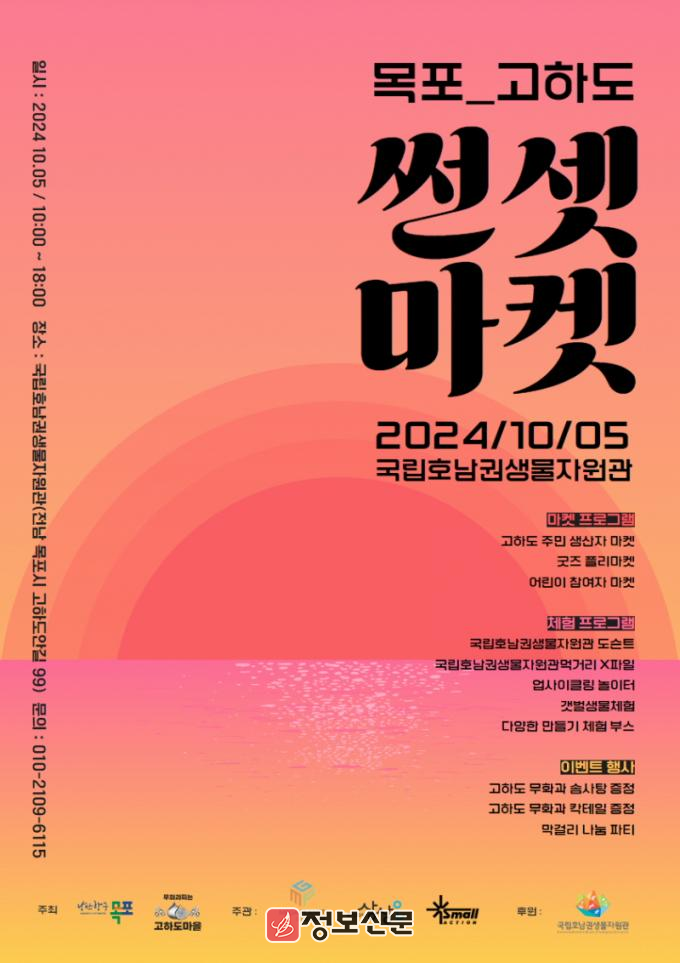 시 관계자는 “이번 썬셋마켓은 주민들이 함께 지역의 특산물과 문화를 직접 선보이는 뜻깊은 자리로 고하도만의 특색을 알리고 주민들의 경제적 자립을 돕는 기회가 될 것이라며, 방문객들의 많은 관심과 참여를 부탁한다”고 말했다.