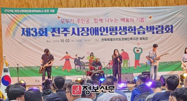 전주시와 전주시장애인평생교육센터(센터장 염미순)는 2일 전북특별자치도장애인복지관 체육관에서 장애인 부모와 학생 등 200여 명이 참석한 가운데 ‘2024 장애인 평생학습 박람회’를 개최했다.