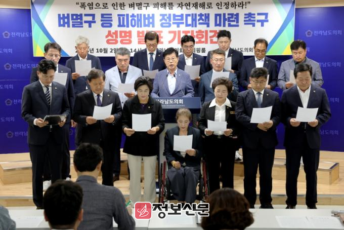 ![]() 전남도의회 농수산위원회, ‘벼멸구 등 재해 피해벼 정부대책’ 촉구 성명 발표 |