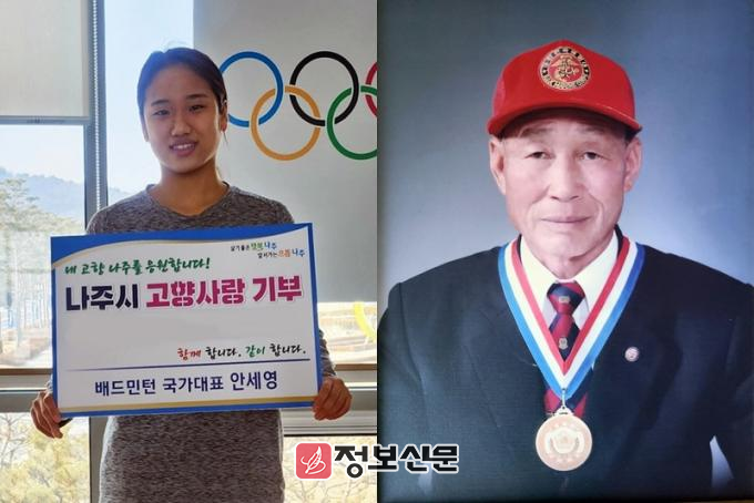 ![]() 2024년 나주시민의 상 수상자로 선정된 여자 배드민턴 국가대표 안세영(왼쪽·교육문화부문), 농어업회의소 초대 회장을 지낸 김석중(오른쪽·산업경제부문) 씨. (사진제공-나주시)
