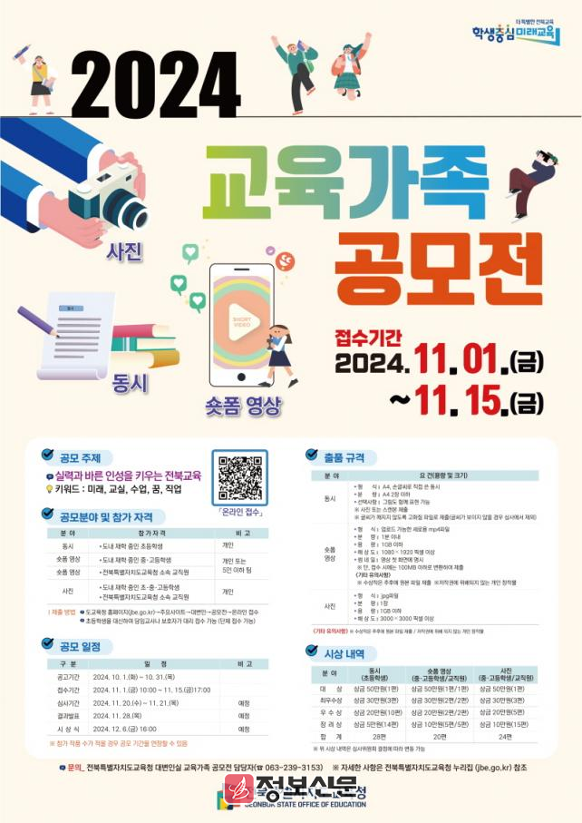 ![]() 전북특별자치도교육청, 2024 교육가족 공모전 개최 |