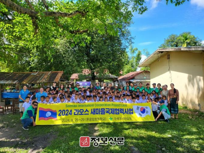 구례군새마을회는 올해부터 라오스국제협력 3개년 사업을 추진할 것이다. 1년 차인 올해는 라오스 비엔티엔에 위치한 폰응암초등학교를 찾아 정수기, 선풍기, 학용품, 간식 등을 전달 하였다.