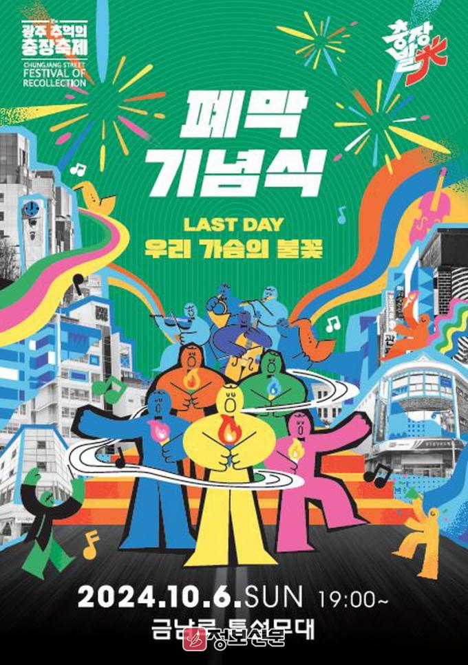 이날 폐막 기념식은 5일간 축제장을 찾은 시민들이 함께 만든 추억을 나누고 2025년 축제를 기약하는 자리다. 글로벌 축제로 거듭나고 있는 축제의 새로운 비전을 선보이고, 광주시 5개 구 주민들의 목소리를 한데 모아 대동(大同)의 메시지를 전달할 예정이다.