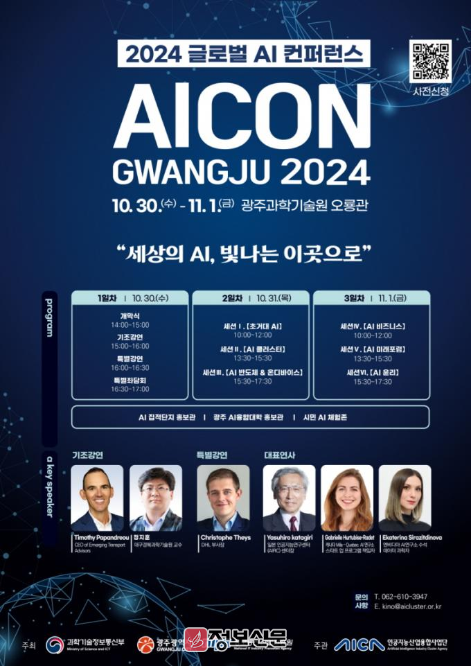 광주광역시(시장 강기정)는 오는 10월30일부터 11월1일까지 광주과학기술원(GIST) 오룡관에서 ‘제4회 아이콘(AICON) 광주 2024’를 개최한다.