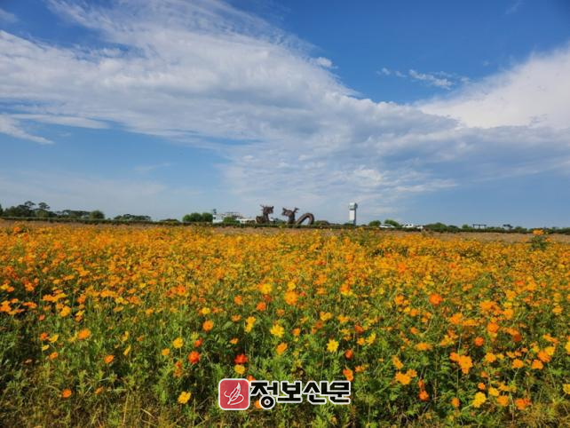 ![]() 김제시, 황금빛 지평선과 어우러진 코스모스 단야의 꽃밭 호응 |