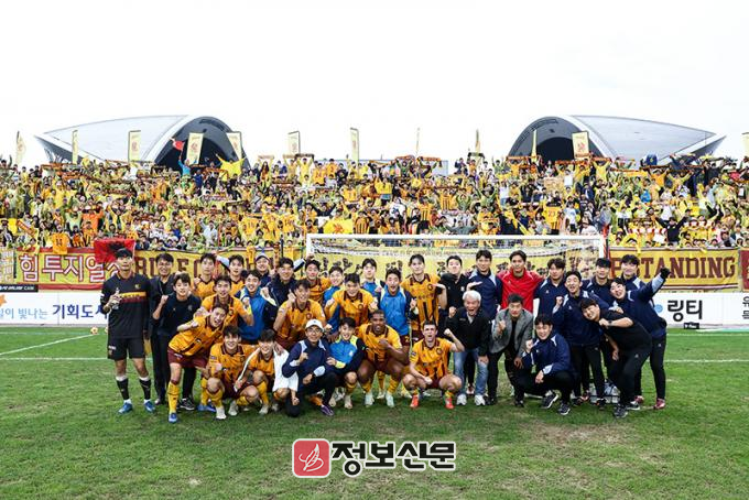 17분 이희균의 로빙패스가 박스 안으로 쇄도하던 허율에게 향했다. 공을 잡자마자 오른발 강슛을 날렸지만 골문 밖으로 벗어났다. 오른쪽 날개에 포진한 정지훈은 공수를 폭넓게 오가는 파이팅 넘치는 플레이로 팀에 활력을 불어넣었다.