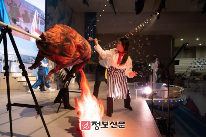 이날 메인 행사가 열린 4층에서는 오후 2시와 7시 두 차례 문화 공연이 진행됐다. 공연은 바다같이 넓은 세상에서 성경 말씀을 길 삼아 항해하는 ‘피터 크루즈’가 등장했다. 이 배가 물음표뿐인 우리 인생을 행복과 희망의 나라로 나아가도록 돕는다는 내용을 뮤지컬 형태로 담았다.