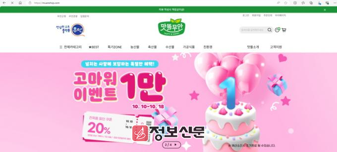 ![]() 무안군 맛뜰무안몰, 회원 1만명 돌파 기념 전 제품 20% 할인이벤트 진행 |