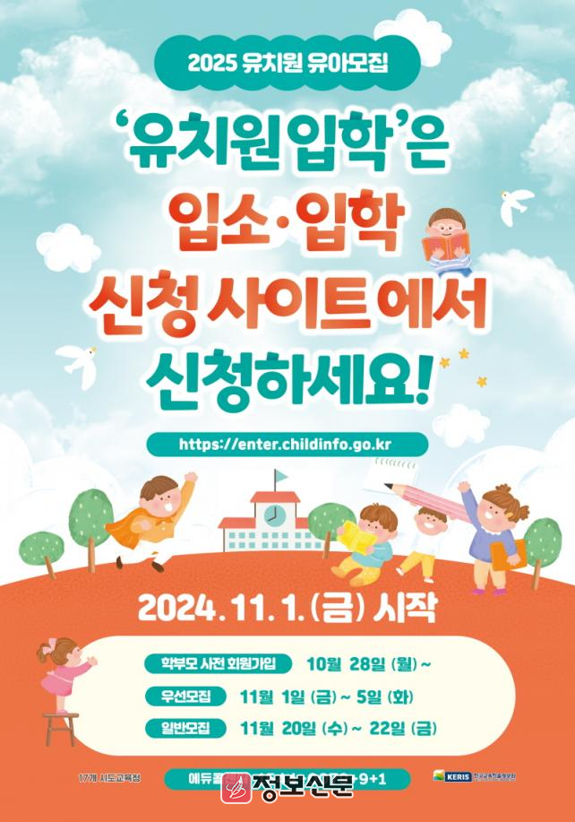 ![]() 제주특별자치도교육청, 2025학년도 유치원 유아 ‘입소·입학 신청 사이트’운영 |