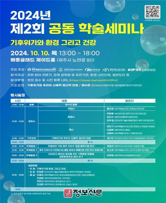 ![]() 제주특별자치도 환경보건센터, ‘2024년 제2회 공동 학술세미나’ 개최 |