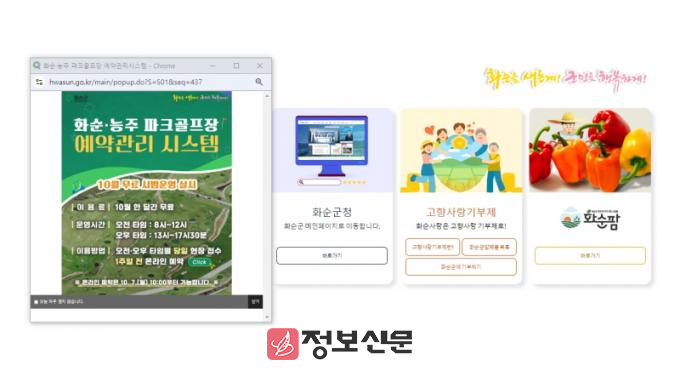 예약관리 시스템 구축에 따라 화순·능주 파크골프장의 예약을 화순군청 홈페이지 팝업창 및 메인배너(https://www.hwasun.go.kr/hanium/intro.html)를 통해 예약·접수할 수 있게 되었다.