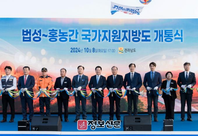 이번 개통식에는 김영록 전남도지사, 이개호 국회의원, 조국혁신당 조국 대표, 김정섭 영광군수 권한대행, 김강헌 영광군의회 의장, 전라남도·영광군의회 의원을 비롯한 지역주민과 공사관계자 등 300여명이 참석한 가운데 법성~홍농 간 국지도 개통을 축하하는 개통행사가 성대하게 진행됐다.