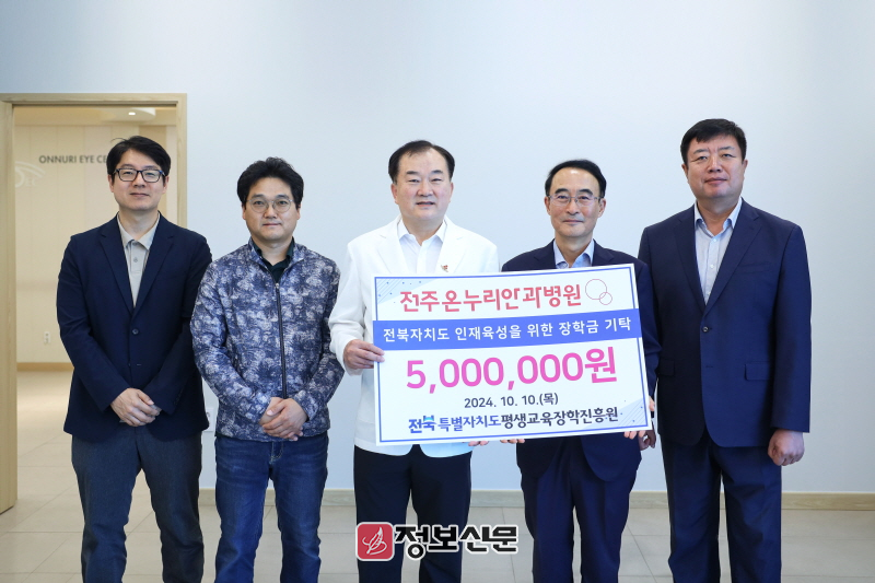 ![]() 전주 온누리안과병원 정영택 병원장, 전북평생교육장학진흥원에 장학기금 전달 |