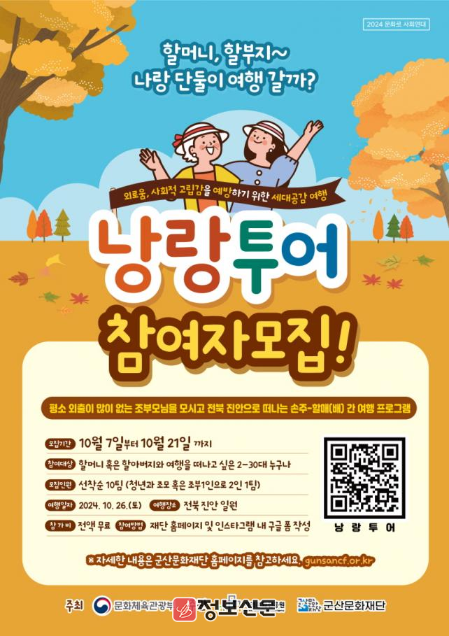 ![]() 군산문화재단, 세대공감 ‘낭랑투어’ 참여자 모집 |