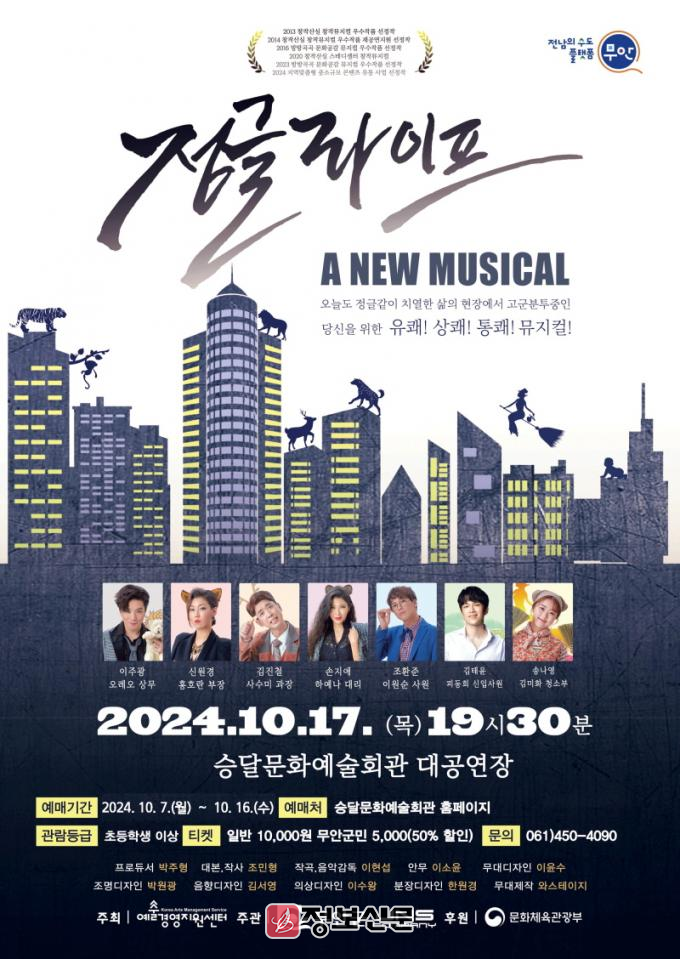 한편, 뮤지컬 ‘정글라이프’는 (재)예술경영지원센터가 주최하고 문화체육관광부가 후원하는 ‘2024 지역맞춤형 중소규모 콘텐츠 유통 공모사업’에 선정되어 국비 80%를 지원받아 진행되는 공연이다.