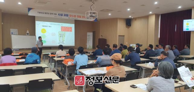 농업기술원은 한국스마트관수시스템협회 윤기문 대표를 초청해 점적관수 시설을 활용하고 있거나 관심 있는 농업인 30여 명을 대상으로 시설 과원 양수분 정밀 관리 방법에 대한 이해도를 높이는 내용의 교육을 진행했다.