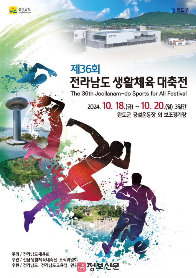 ‘제36회 전라남도 생활체육 대축전’은 10월 18일부터 20일까지 완도 공설운동장 등 각 종목별 경기장에서 24개 종목이 진행되며 22개 시군에서 선수, 임원 등 2만 1천여 명이 참가할 예정이다