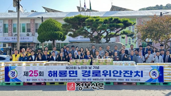 이번 행사는 10월 경로의 달을 맞아 어르신들의 그간 노고에 대한 감사와 위로를 전하기 위해 해룡면 노인회(회장 김정수), 해룡면 청년회(회장 채승), 해룡면 행정복지센터가 힘을 합쳐 해룡면 사회단체와 지역주민의 도움을 받아 이번 잔치를 열었다.